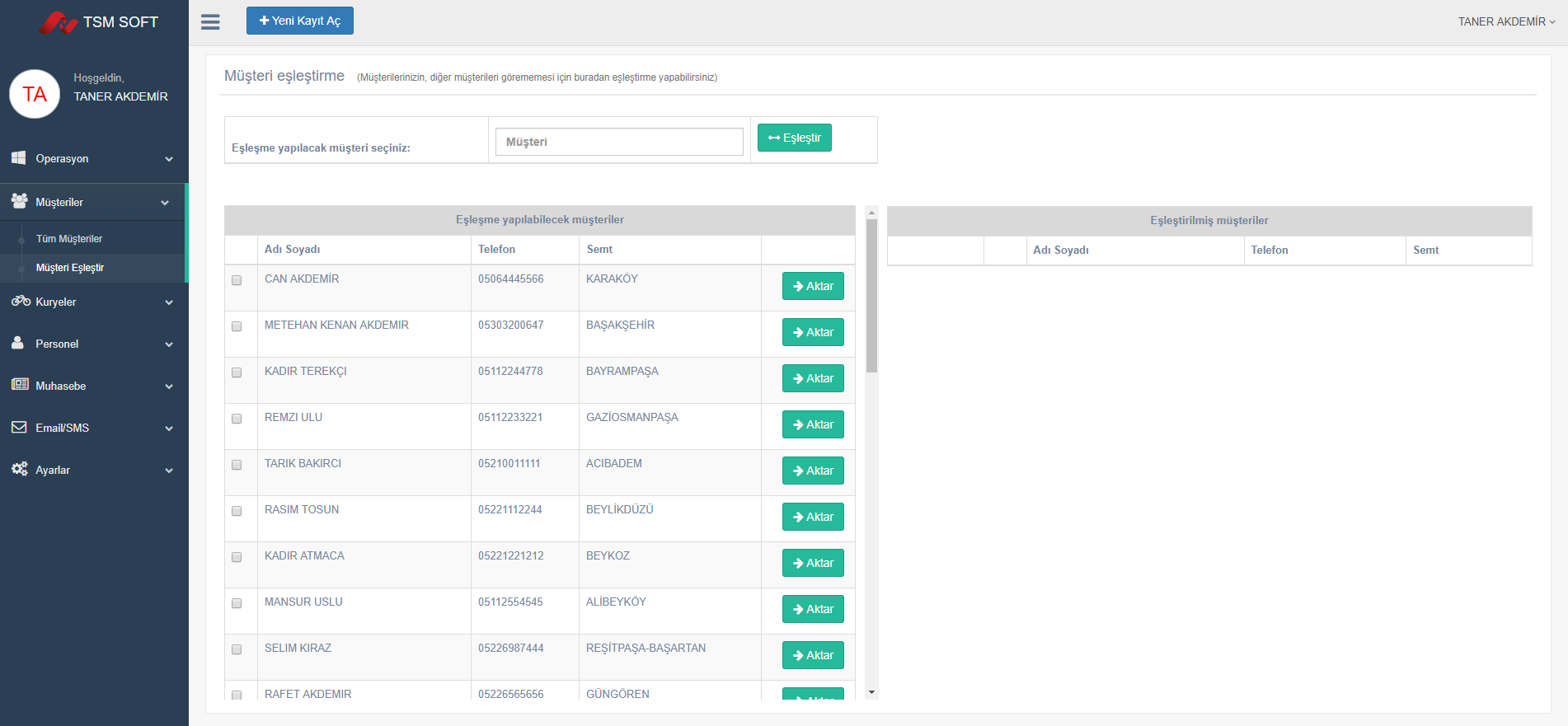 * Dilediğiniz müşterilerinize müşteri paneli açabilir, müşterilerinizi, sadece görmesine müsade ettiğiniz diğer müşteriler ile eşleme yapabilirsiniz.