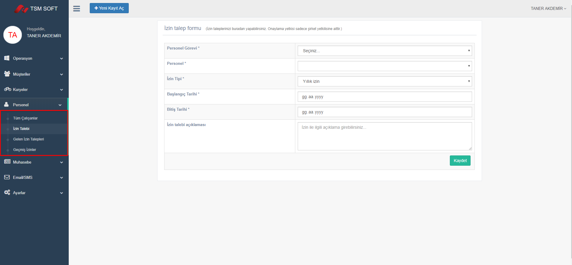 * İnsan kaynakları modülü sayesinde, çalışanlarınız izin taleplerinde bulunabilir, bu talepler onaylanmak üzere yöneticisine gönderilerek, tüm izinleri kayıt altına alabilir ve personel izin takibi yapabilirsiniz.