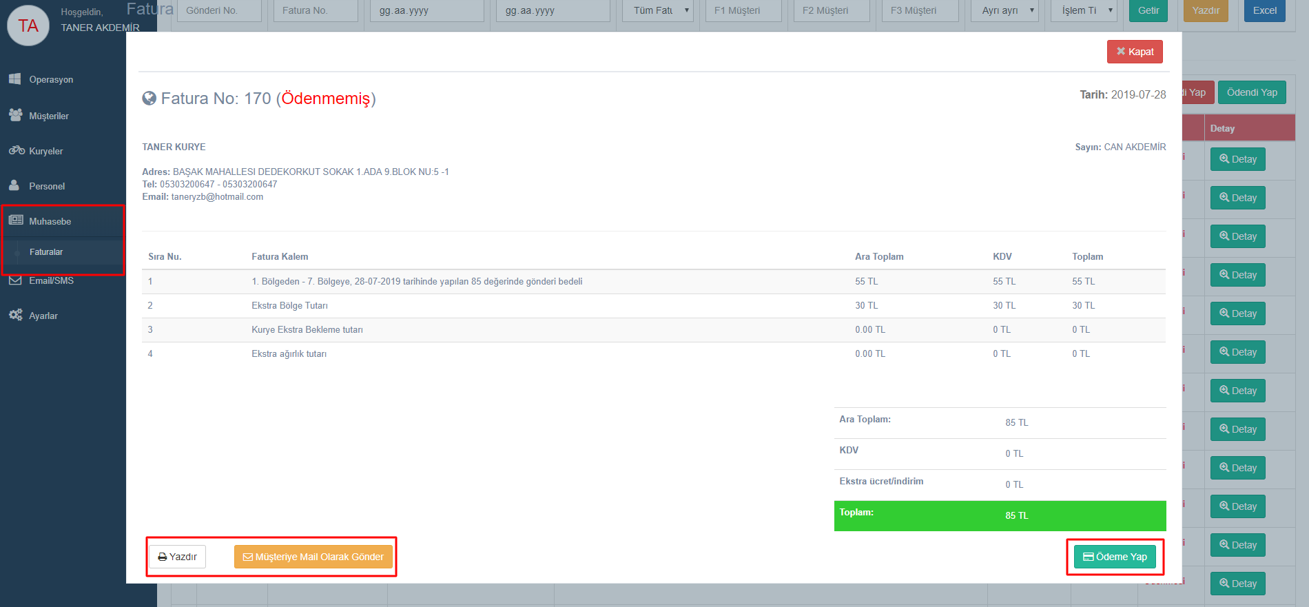 * Muhasebe modülü ile, müşterilerinize fatura kesebilir, faturalarını kredi kartları ile ödemelerini sağlayabilir ve dökümlerini mail adreslerine yollayabilirsiniz.