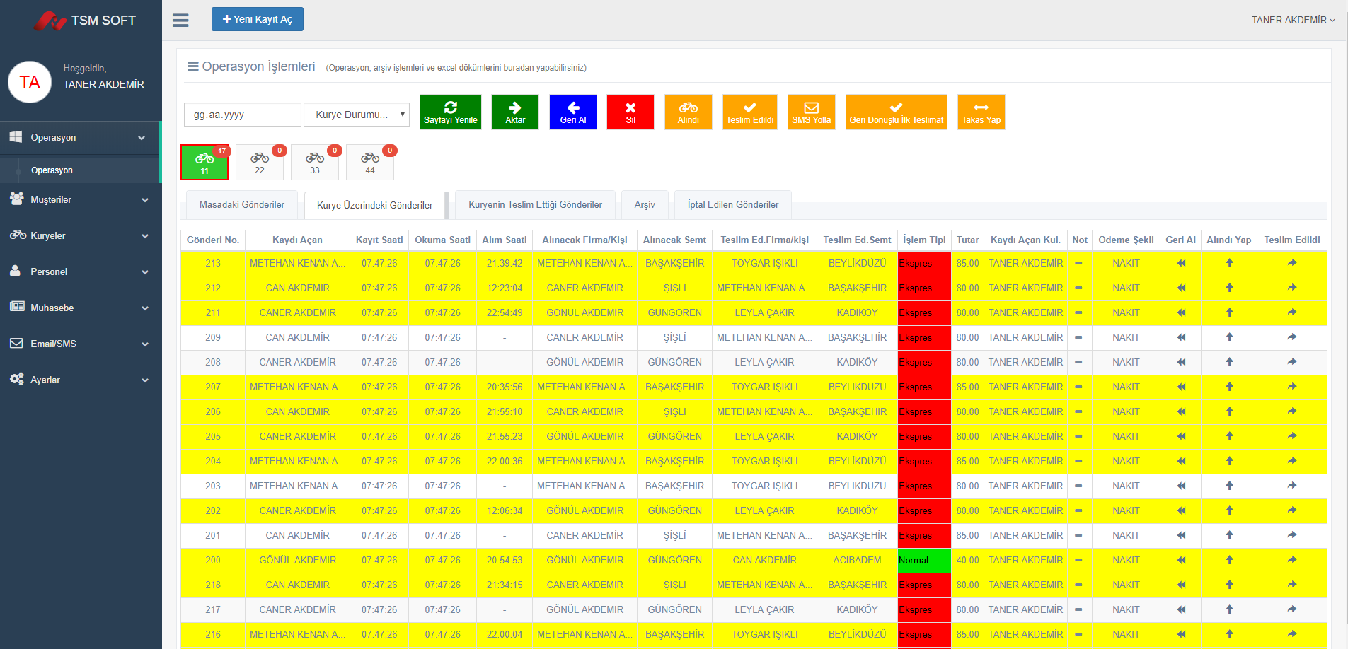 * Masada bekleyen işleri, kurye üzerindeki gönderileri, kuryenin teslim ettiği gönderileri, iptal edilen gönderileri ve arşiv bilgilerini tek ekranda takip edebilirsiniz.