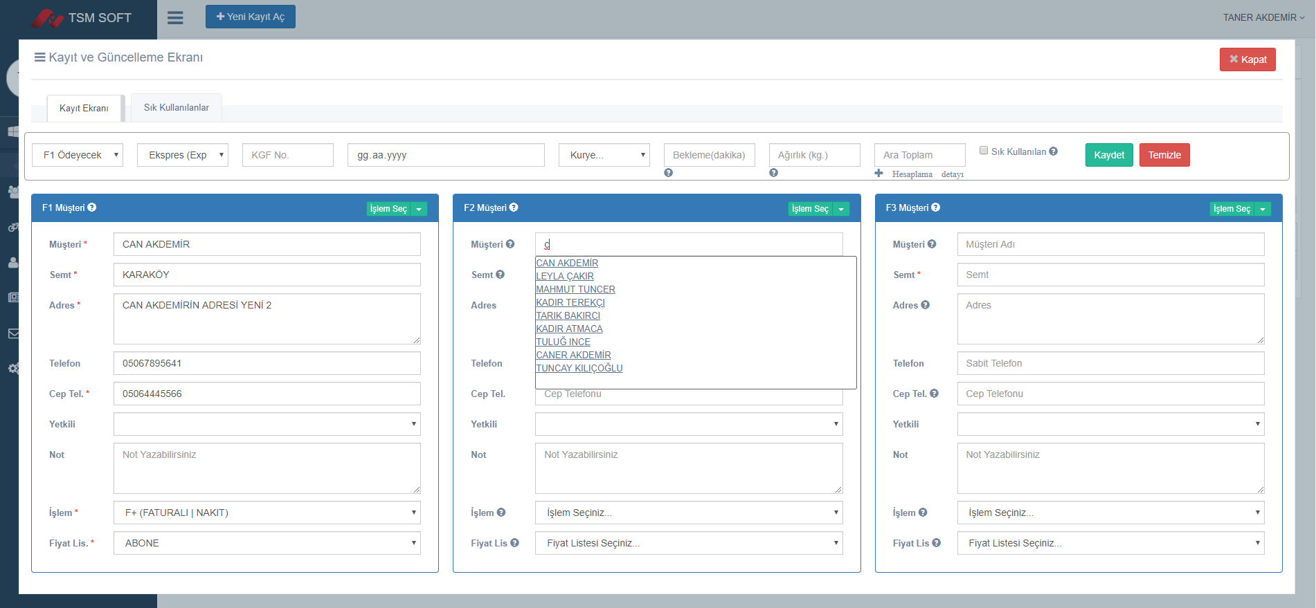* Sürekli tekrar eden gönderileri, sık kullanılanlara ekleyebilir ve kayıt ekranını tekrar tekrar doldurmadan, tek tuşla anında kayıt girişi yapabilirsiniz.