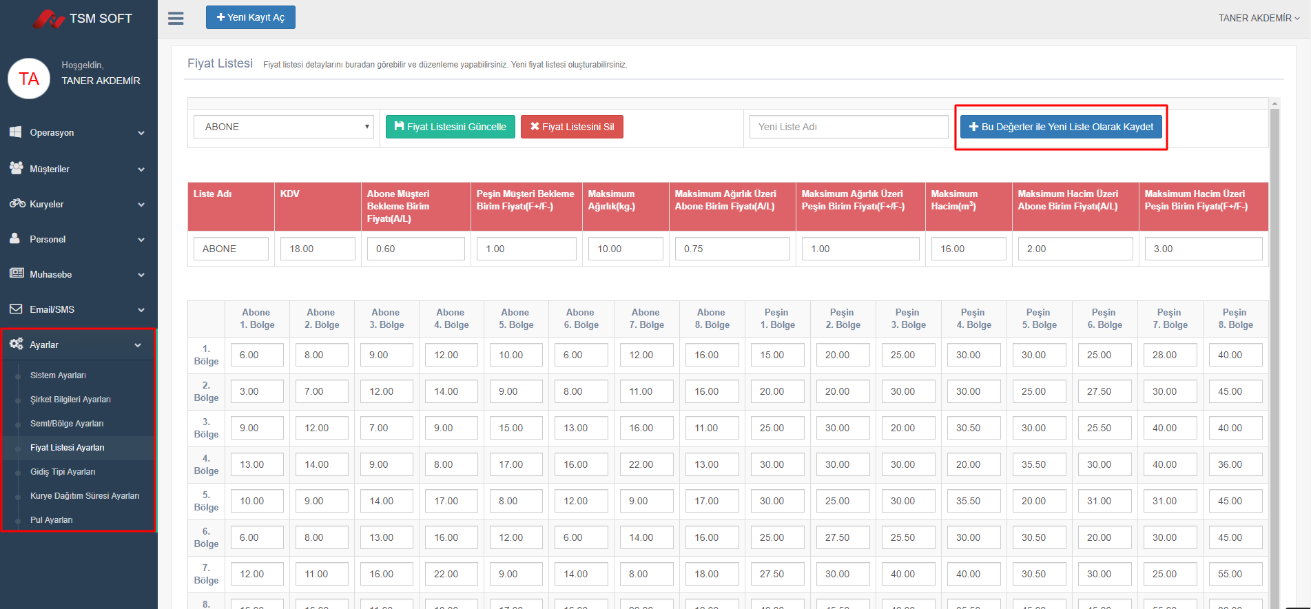 * Her müşterinize, ayrı ayrı özel fiyat listesi oluşturup tanımlayabilirsiniz. Böylece sistem, her müşteri için belirlediğiniz fiyat listesi üzerinden gönderi hesabı yapacaktır.