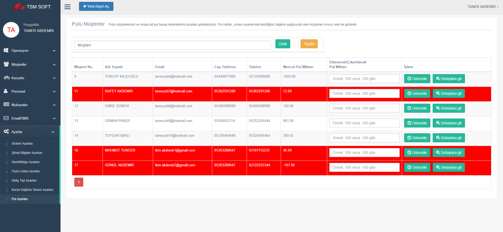 * Pullu müşterilerinizin takibini yapabilir, pul ekleyip eksiltebilir, pul bilgisi dökümü alabilirsiniz.